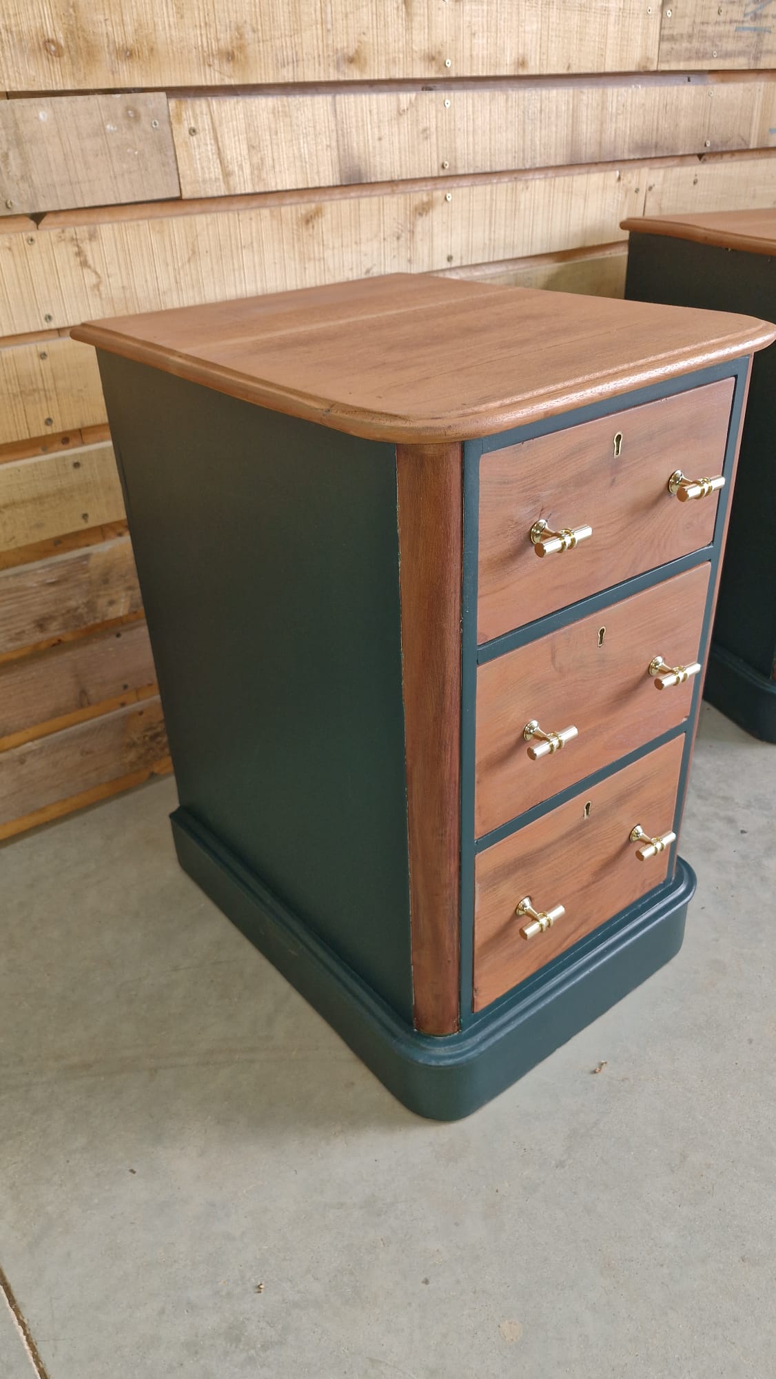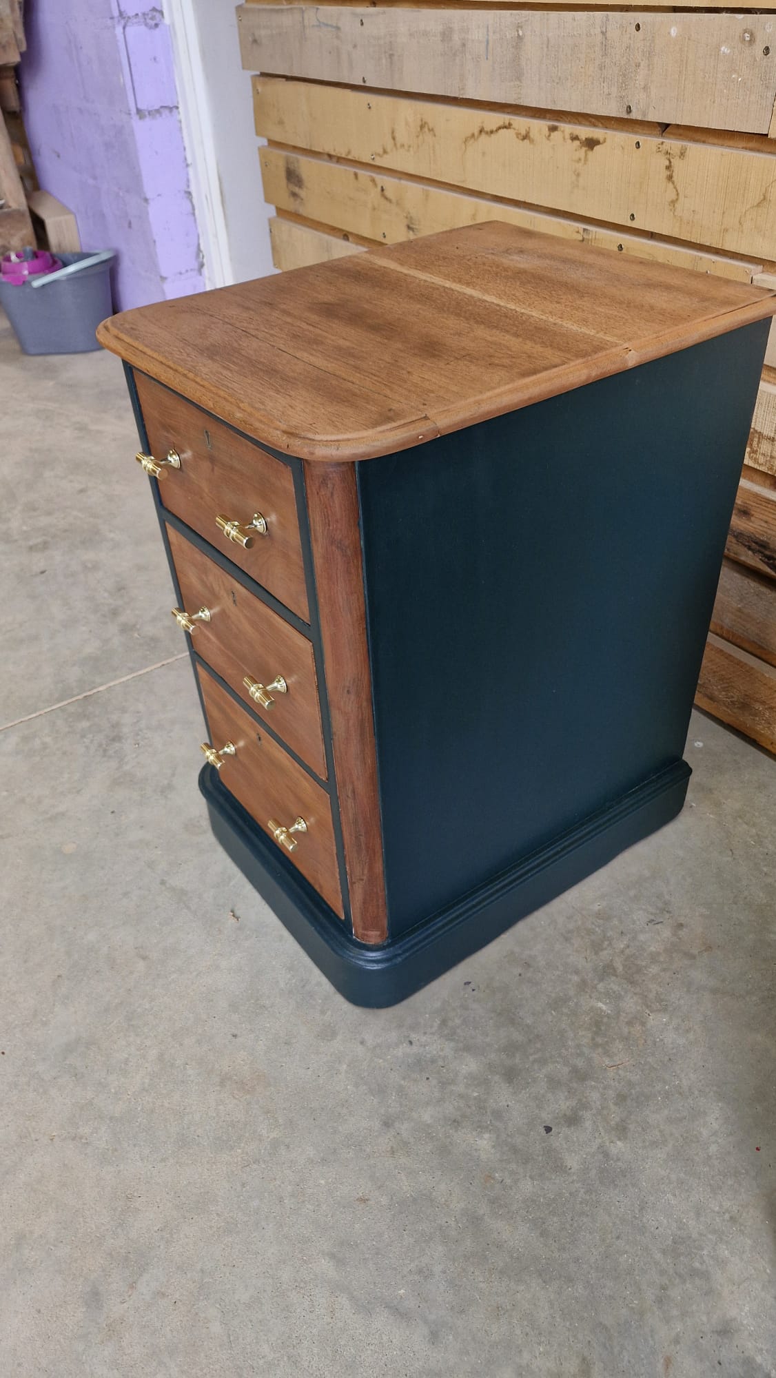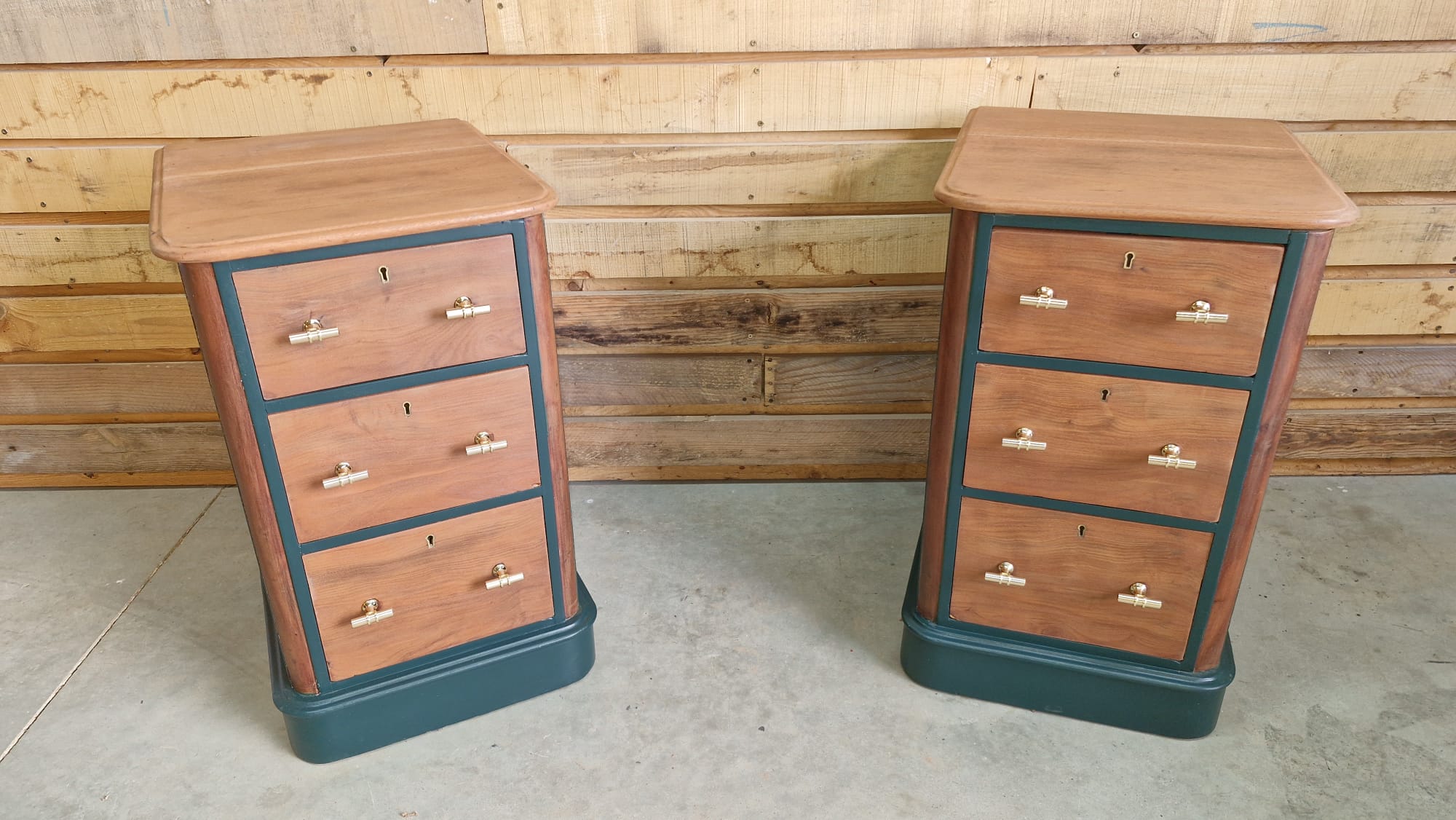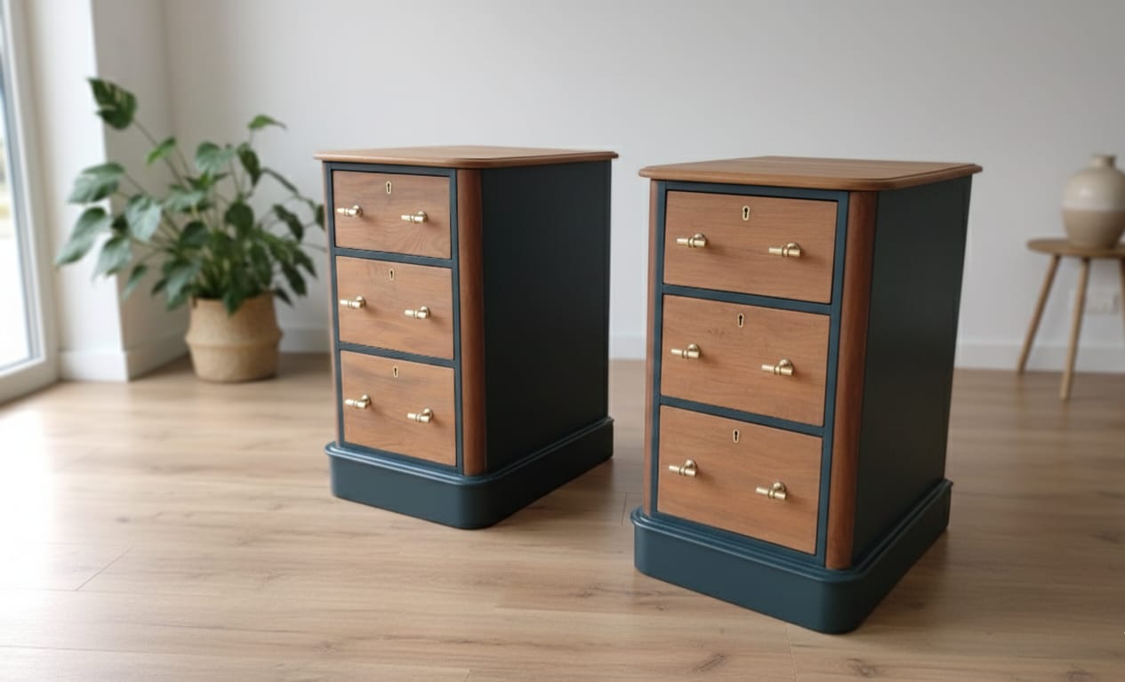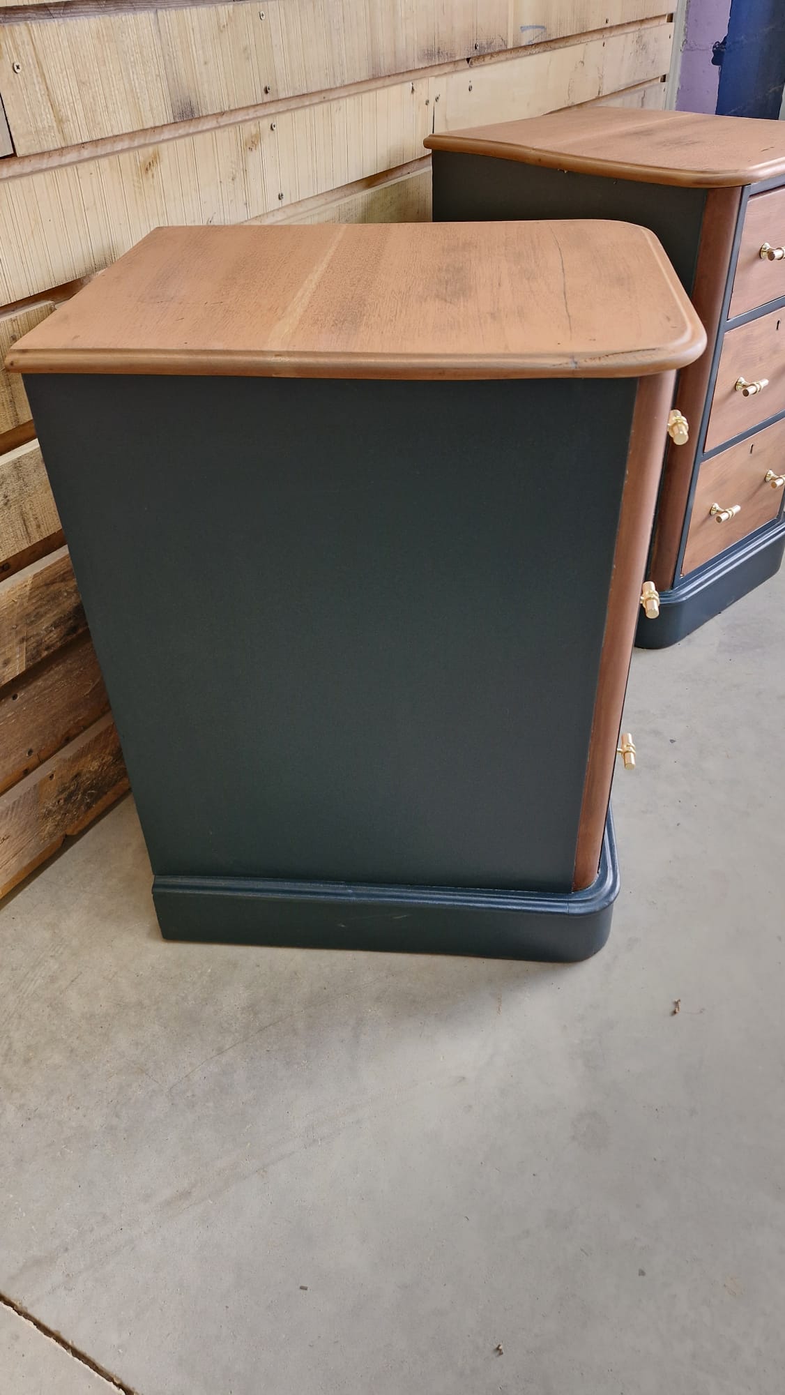 Donnez du caractère à votre intérieur avec ce duo de meubles d’exception. Alliant la chaleur du bois naturel à la profondeur d’un bleu nuit/anthracite, ces pièces ont été restaurées (ou conçues) pour devenir les pièces maîtresses de votre chambre ou de votre salon.
