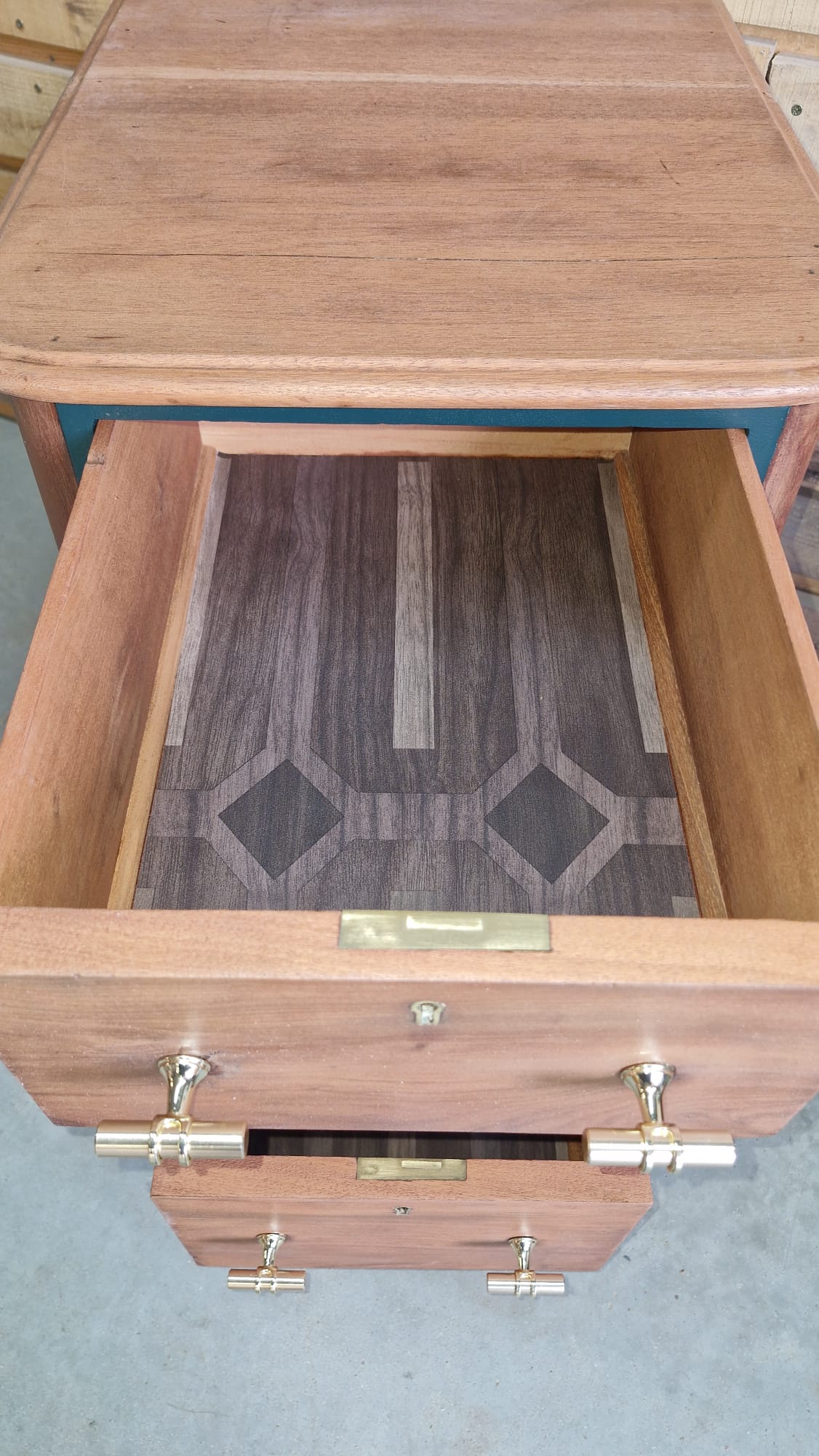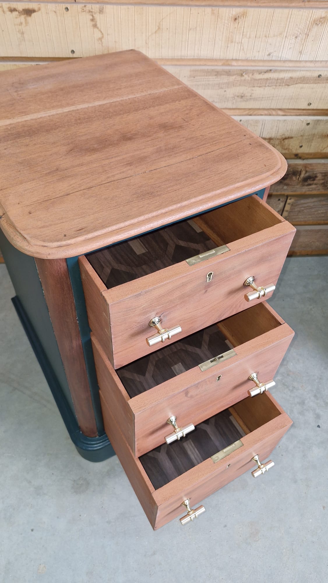Nombre de tiroirs : 3 tiroirs profonds par meuble. Intérieur tapissé.